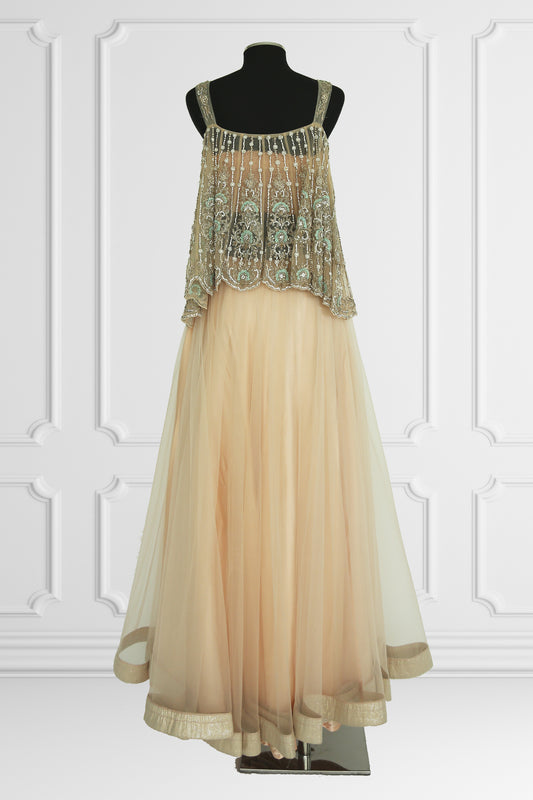 Red & Beige Heavy Embroidered Lehenga with Cape