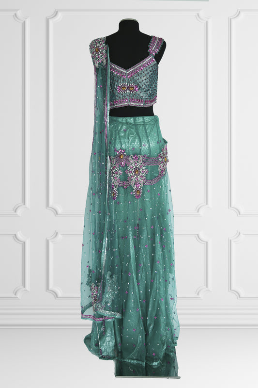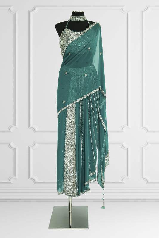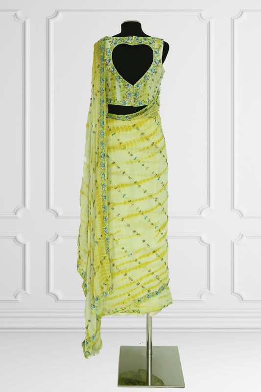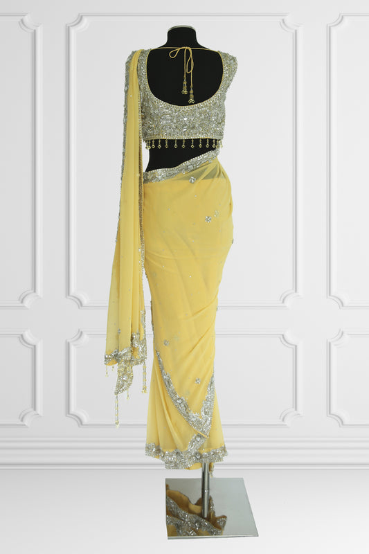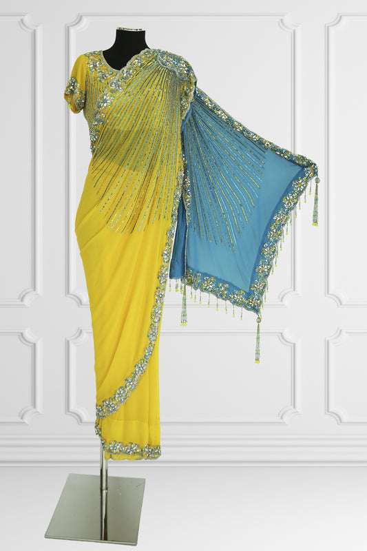 Bicolor Blue and Yellow Heavy Embelishes Saree Set