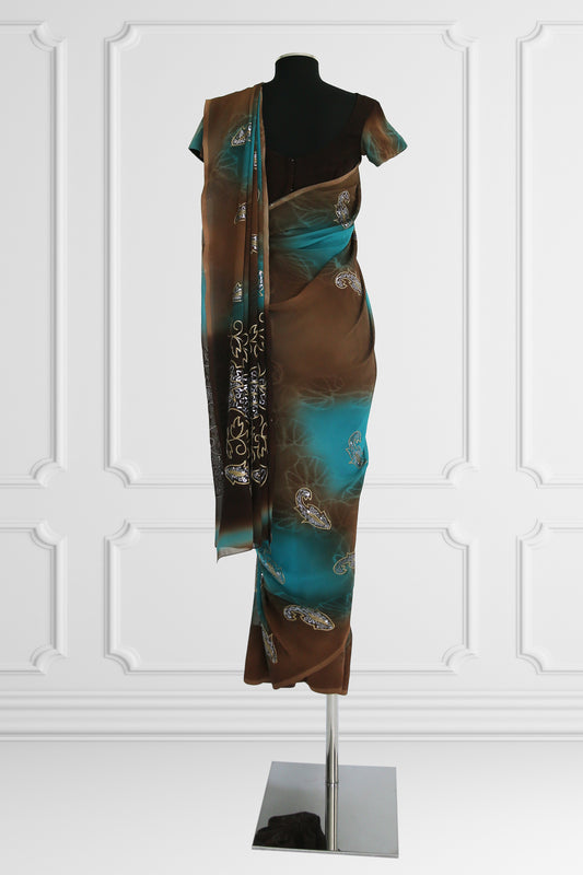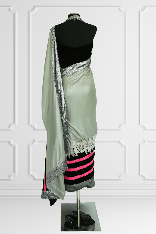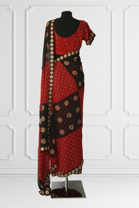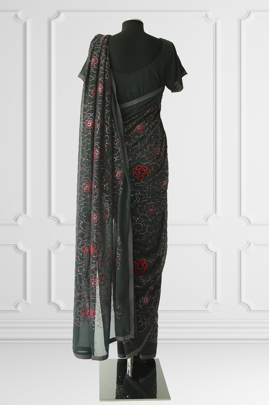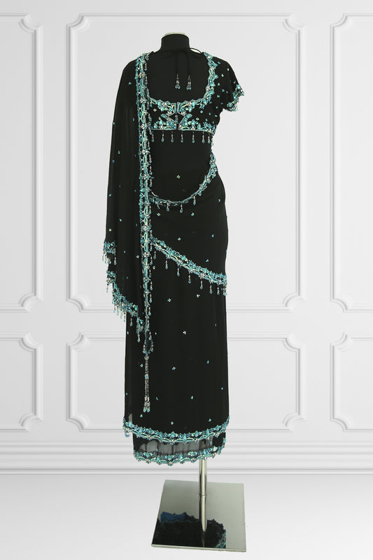 Two Blouse Bicolor Ready Made Black and Blue Saree